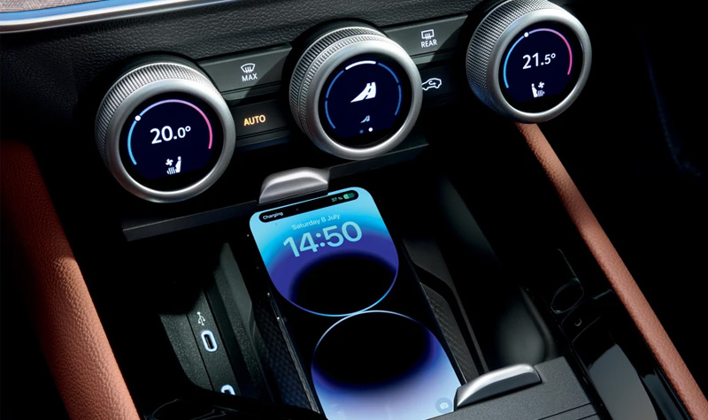 The Superb Wagon Sportline is equipped as standard with four fast-charging USB-C ports (45W) - two in the front and two in the back. There is a fifth USB-C port (15 W) in the rear-view mirror for charging a dash cam.