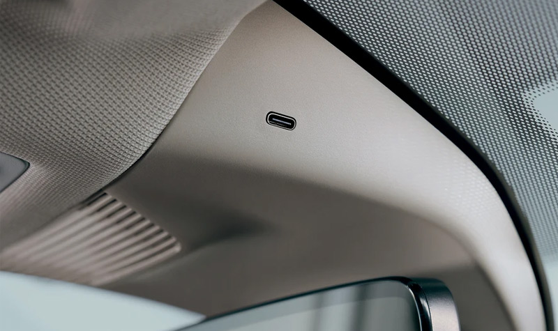 The Superb Wagon Sportline is equipped as standard with four fast-charging USB-C ports (45W) - two in the front and two in the back. There is a fifth USB-C port (15 W) in the rear-view mirror for charging a dash cam.