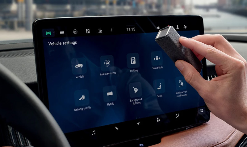 The Superb Wagon Sportline is equipped as standard with four fast-charging USB-C ports (45W) - two in the front and two in the back. There is a fifth USB-C port (15 W) in the rear-view mirror for charging a dash cam.